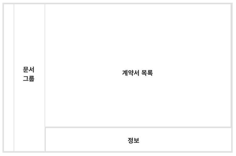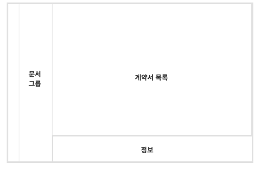 계약서 UI는 대시보드와 마찬가지로 사용성에 대한 개선이 필요해 보였습니다. 사용자가 좌측에 있는 문서 그룹을 선택하면 우측에 해당 그룹에 속한 계약서 목록이 나타나며, 이 목록에서 원하는 계약서를 선택하면 우측에 계약서 뷰어가 나타났습니다. 한 화면에 계약서의 모든 정보를 확인할 수 있다는 장점이 있지만, 계약서 목록에서 계약서의 정보를 간단하게 볼 수가 없어 계약서 목록을 빠르게 흩을 수 없다는 단점이 있었습니다.